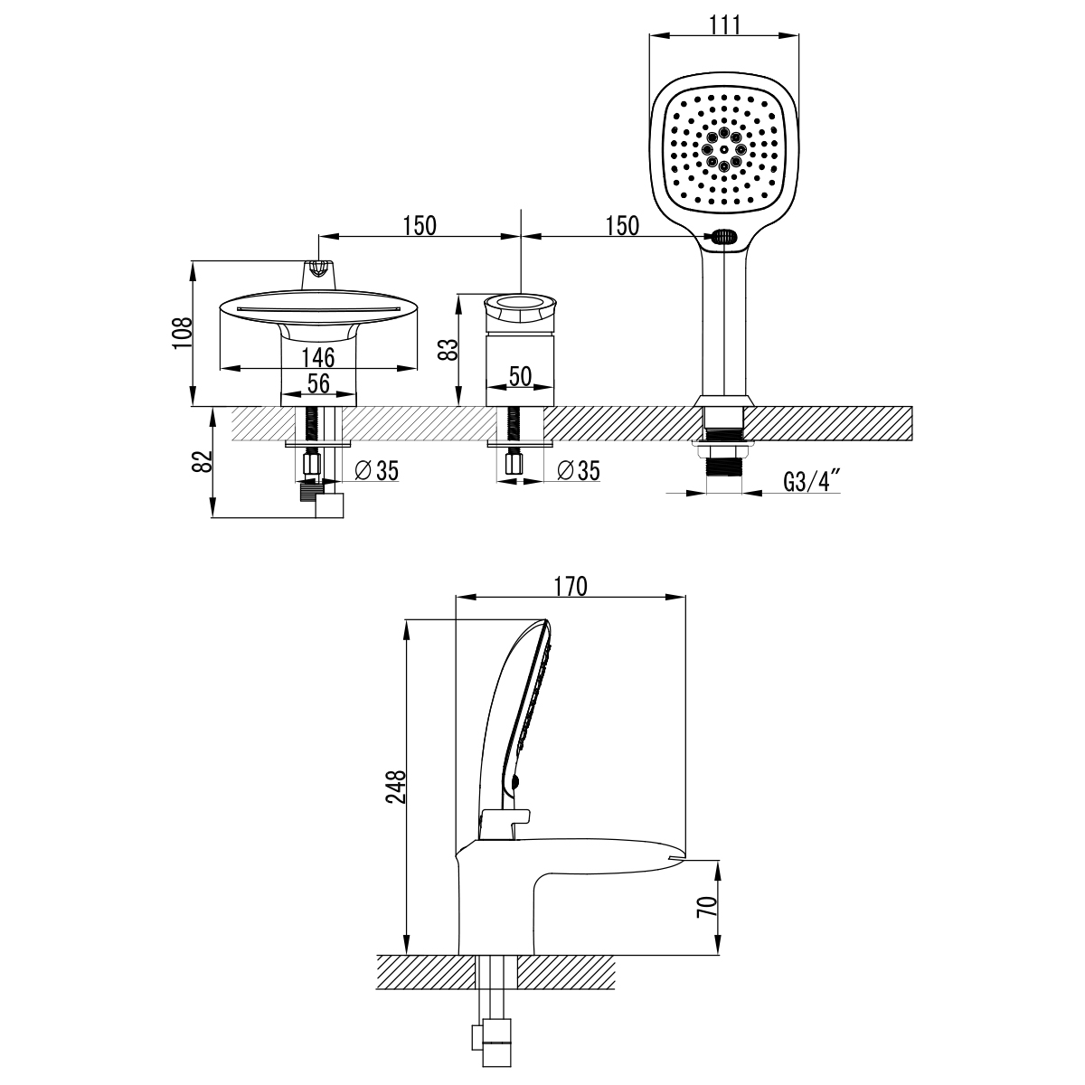 Смеситель Lemark STATUS на борт ванны на 3 отв арт. LM4445C АКЦИЯ