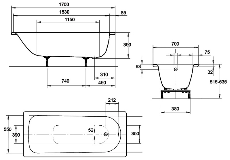 Ванна 170х70х39см стальная 2,3мм EUROWA Form Plus мод.312 (Kaldewei) +Ножки для ванны УЦЕНКА