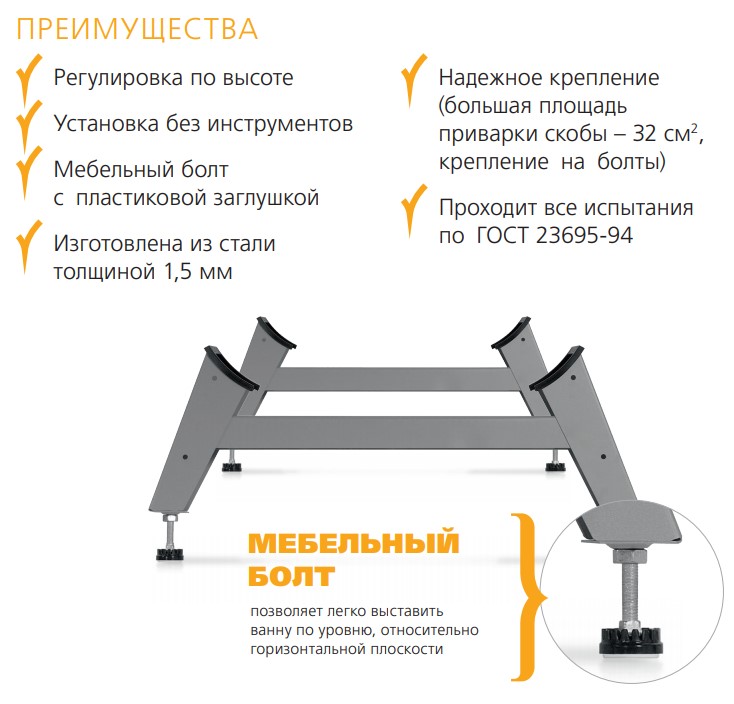 Опорная подставка регулируется по высоте, изготовлена из стали 1,5 мм