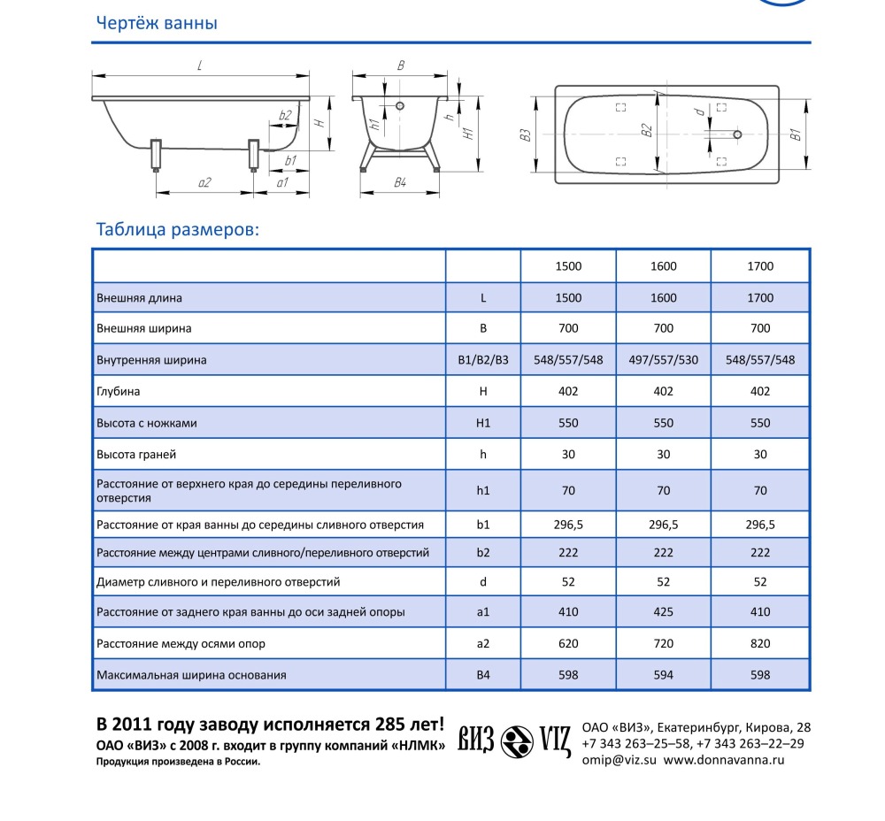 Производитель: ВИЗ (Верх-Исетский металлургический завод), Россия Гарантия 5 лет