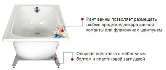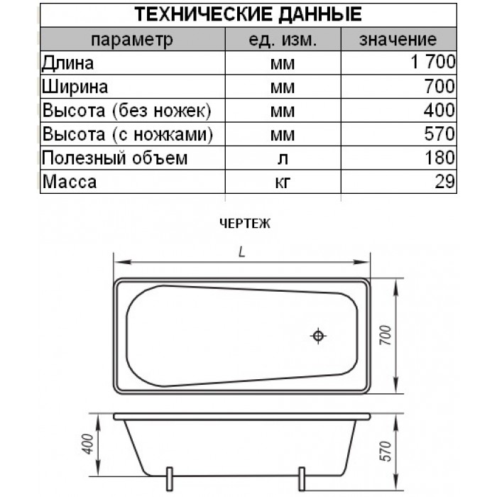 Описание: стальная ванна, размер 170x70x40 cм, с опорной подставкой, с рантом, цвет белая орхидея